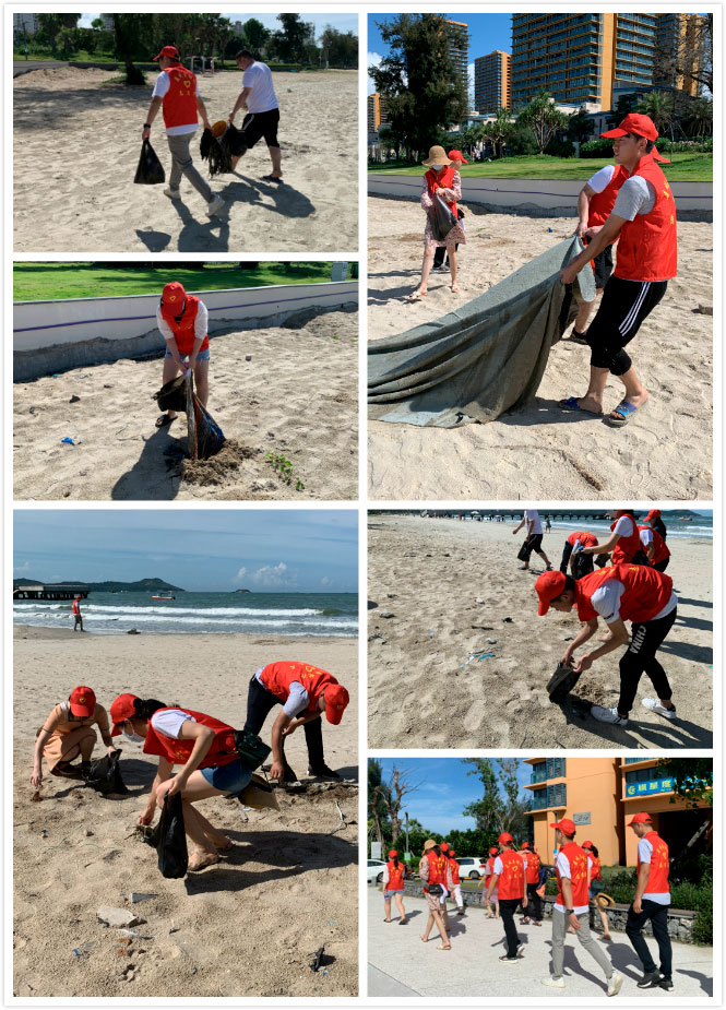 在兩天的團建活動中,義工隊組織了一次海灘清理垃圾行動,對雙月灣的棧道、海面和沙灘上的垃圾進行了清理。義工隊成員們用自己的雙手、汗水,以實際行動為自然環(huán)境出一份力,守護美麗的沙灘。
